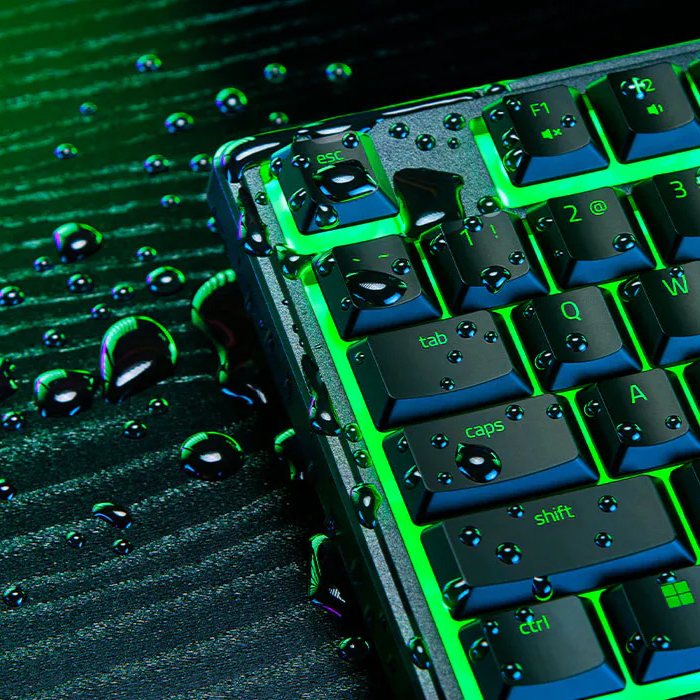 El diseño robusto del Razer Ornata V3 X te ofrece la suficiente solidez para sesiones de juego intensas, además de resbalarle las pequeñas salpicaduras que pueda sufrir.